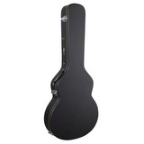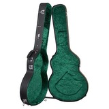 Wooden Hard Shell with Black Leatherette Outer Cover and Accented Stitching. Green Plush Lining. Solid Grab Handle. Strong, Durable Metal Clasps. Internal Measurements. Length: 107cm, Lower Bout: 43cm, Upper Bout: 31cm, Depth: 10cm.