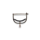 Guitar capo with around-the-neck yoke design to ensure superior tone, intonation and tuning stability. Easily stored behind the nut when not in use. Bright nickel finish.
