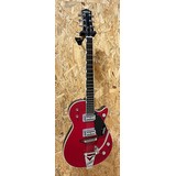 This Pre Owned Gretsch 2015 G6131 TVP in Firebird Red is in excellent condition. Overall only showing very light signs of use. On close inspection there are some light surface scratches/swirling but no big dinks or dents to report. The scratchplate and back of the body are the areas that show the wear the most. Having said that any small blemishes are very light for a 10 year old guitar. You can tell it has been well cared for over the years. The neck is in excellent condition and frets barely show any wear at all. All hardware working as it should and presents well.