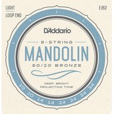 EJ62 light gauge mandolin strings are wound with 80/20 Bronze for a crisp, bright tone on all 4 wound strings; perfect for recording. 80/20 Bronze mandolin strings are sometimes referred to as Brass strings. 80/20 Bronze, commonly referred to as brass, is the original acoustic string alloy selected by John D'Addario Sr. and John D'Angelico in the 1930s. 80/20 Bronze strings are popular for recording due to their crisp, deep and projecting tone and appeal to many traditionalists and vintage enthusiasts for their historical significance. All D'Addario acoustic strings are wound on a hexagonally shaped, high carbon steel core, resulting in long lasting, bright sounding tone with excellent intonation. D'Addario, the world's largest manufacturer of musical instrument strings, is known as The Players Choice with a reputation for unsurpassed quality and consistency. D'Addario's innovative, environmentally friendly packaging reduces waste and provides protection from corrosion. All D'Addario strings are manufactured in the U.S.A. using proprietary, digitally controlled, state-of-the-art machinery for unmatched performance, set after set.